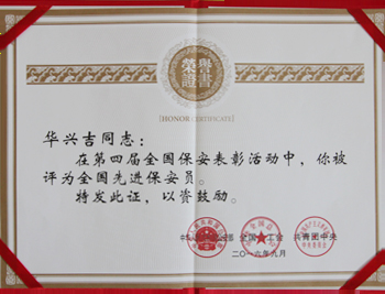 第四屆全國(guó)先進(jìn)保安員 華興吉