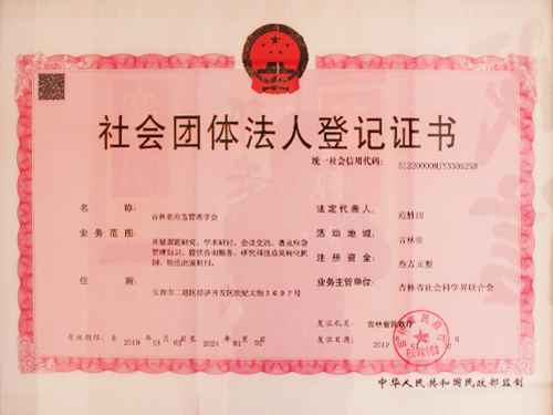 吉林省應(yīng)急管理學(xué)會(huì)登記證書